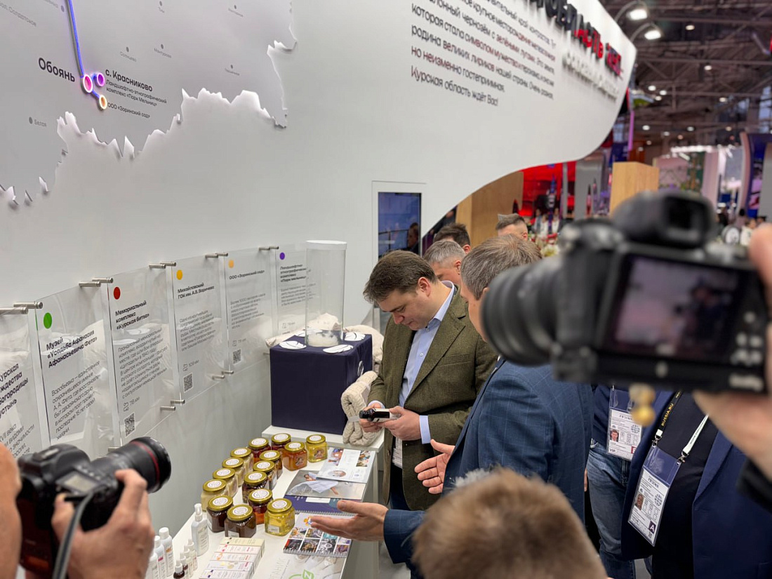 Стенд Курской области на выставке-форуме «Россия» посетили первый заместитель министра промышленности и торговли России Василий Осьмаков, представители Минэкономразвития и Минсельхоза страны, Российского экспортного центра.