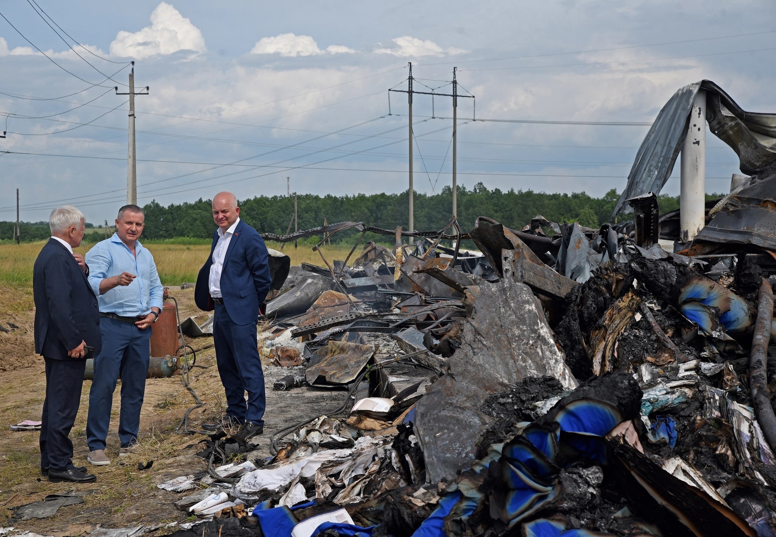 Сегодня заместитель губернатора Курской области Сергей Стародубцев и министр промышленности, торговли и предпринимательства Михаил Аксенов посетили предприятие «Бел-Поль». На нем произошел пожар из-за беспилотника ВСУ. Пострадал склад площадью 1100 м² и цех по изготовлению подушек из синтетики.
