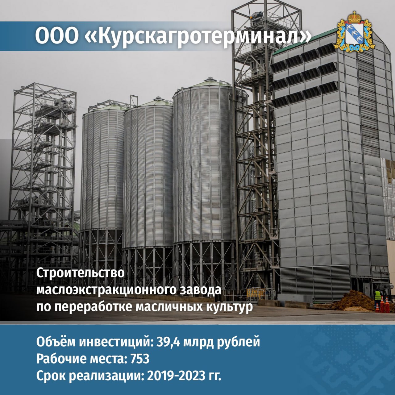 Кроме того, в Курской области строят маслоэкстракционный завод по переработке масличных культур. В этот проект инвестировали порядка 39,4 миллиарда рублей. Строительство предприятия позволит создать более 750 новых рабочих мест.