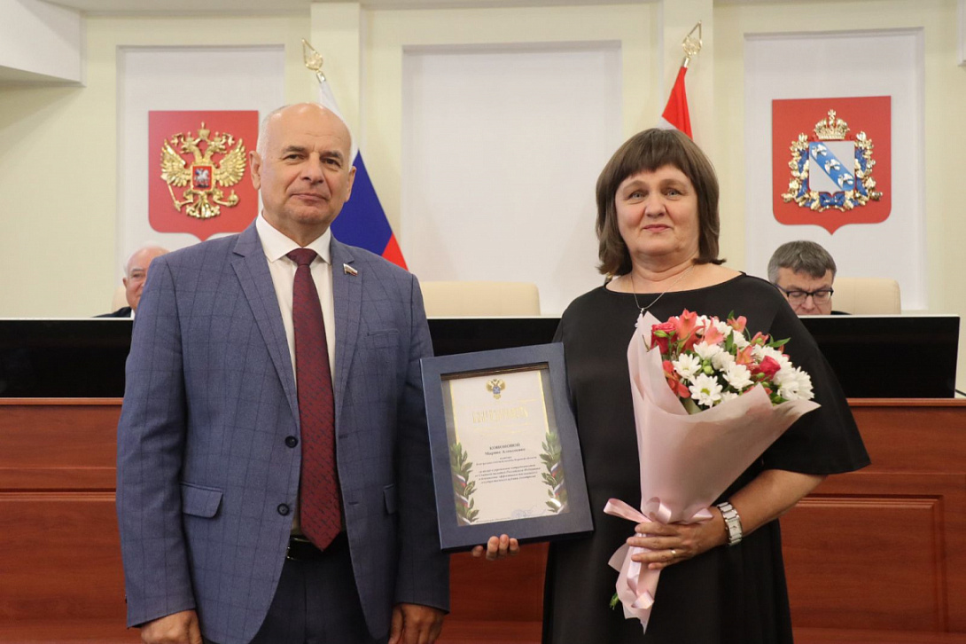 На заседании Курской областной Думы аудитору Контрольно-счетной палаты Курской области Марине Алексеевне Кононовой была вручена Благодарность Счетной палаты России