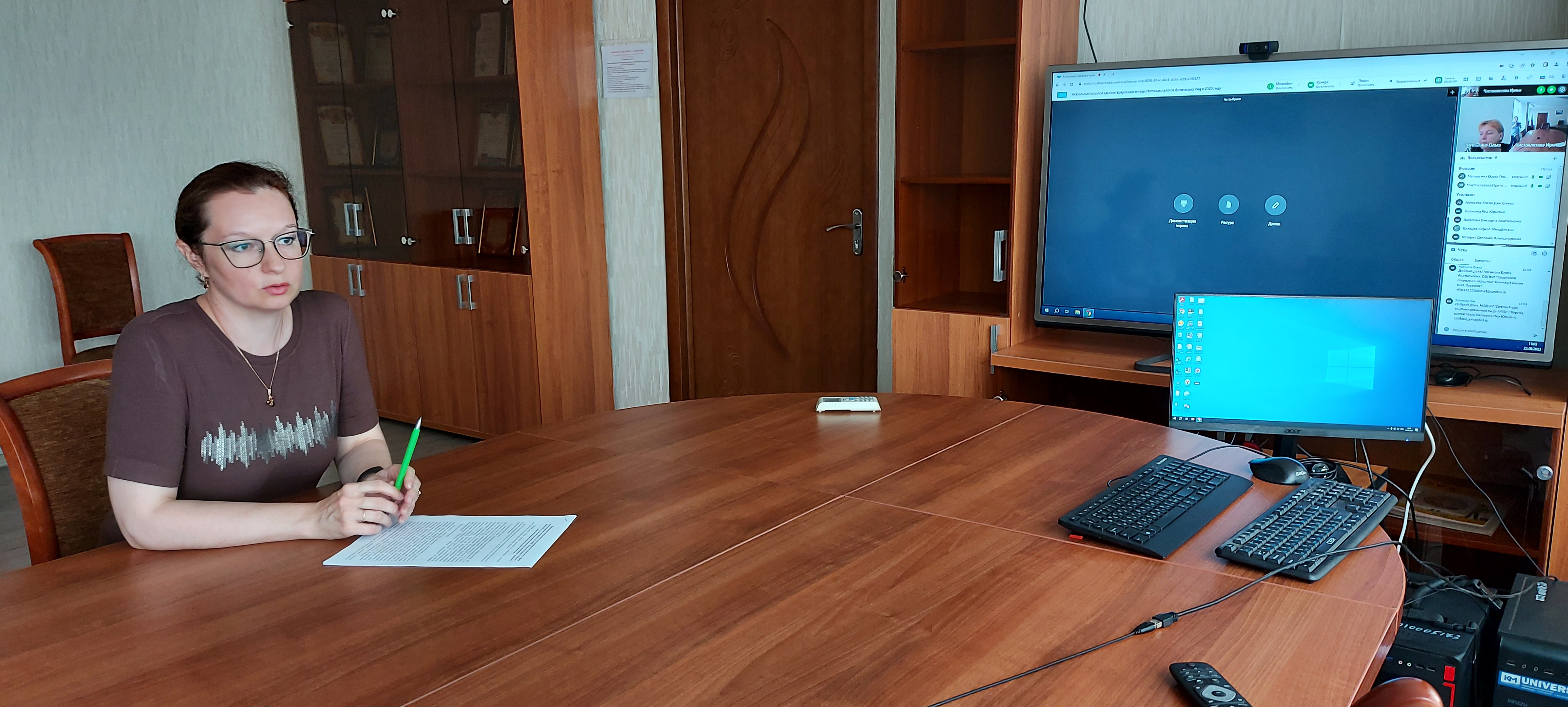 В этот раз, начальник отдела камерального контроля в сфере налогообложения имущества №2 УФНС России по Курской области Юлия Кривсун приняла участие в вебинаре в формате видеоконференцсвязи на тему «Актуальные вопросы администрирования имущественных налогов физических лиц в 2023 году».