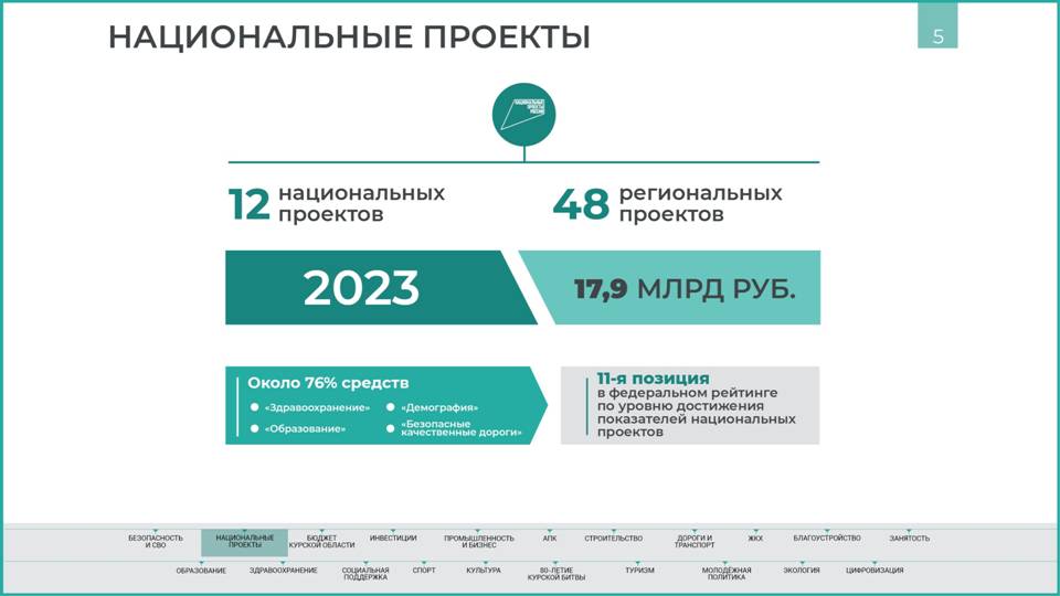 В Курской области реализовано 12 национальных проектов