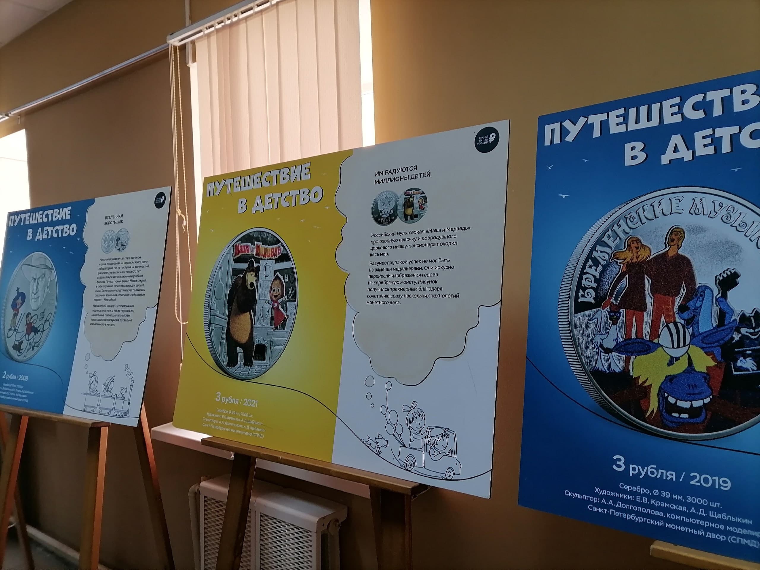 На фотополотнах выставки посетители увидят увеличенные изображения памятныхмонет, выпущенных Банком России в разное время, смогут рассмотреть все тонкости рисунка со знакомыми каждому образами из детства. Эти монеты посвящены героям народных сказок, персонажам отечественной мультипликации, писателям, художникам и, конечно, самим детям.