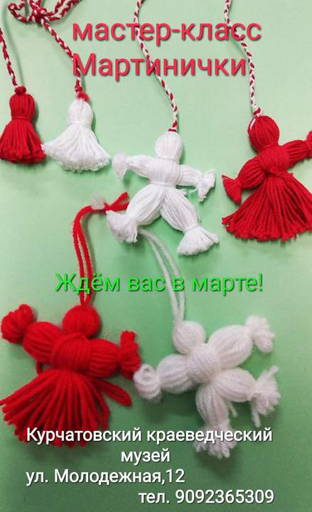 В рамках программы «Музей выходного дня», Курчатовский краеведческий музей приглашает жителей и гостей города на мастер-класс «Мартинички». О том, как в старину готовились к встрече Весны, какие обряды и обереги готовили, какой смысл вкладывали в изготовление тех или иных кукол, можно узнать, побывав на мастер-классе.