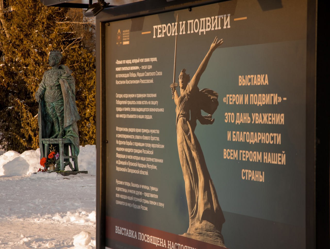 На территории сквера юнармейцев около областной библиотеки имени Асеева в Курске открылась фотовыставка «Герои и подвиги».