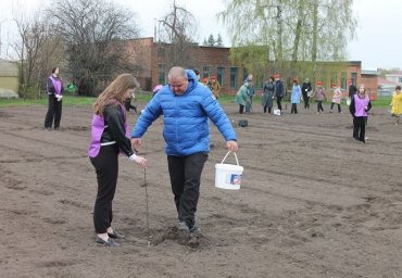 Чтобы почтить память павших советских воинов на Курской дуге на территории Ленинской СОШ решили высадить яблоневый сад. В посадке деревьев приняли участие как школьники, так и волонтёры. Вместе с ними экологическим благоустройством занимались и административные работники: Ольга Стародубцевва – глава посёлка Прямицыно, Лариса Никифорова – начальник управления образования, Ольга Воробьёва – председатель регионального комитета ЗАГС. Были и учителя, которые помогали своим ученикам. Кто-то даже привёл своего юного сына. Таким образом, дерево будущий мужчина уже посадил, осталось построить дом и вырастить наследника. На акции все действующие лица слились в едином порыве. Один подносил воду, другой поливал растения, третий засыпал вырытые лунки – все помогали друг-другу.