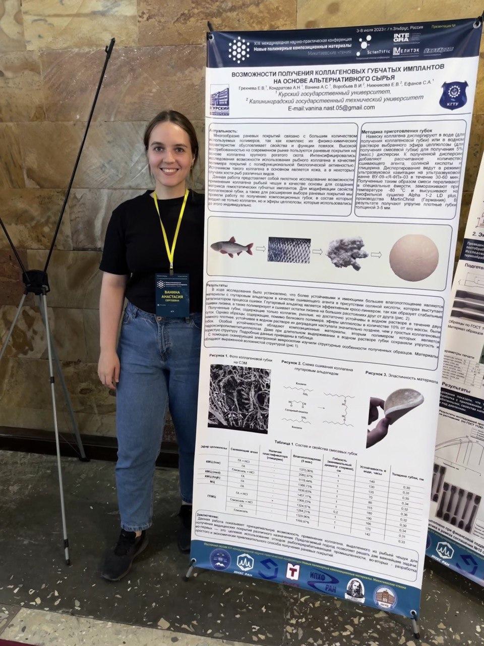 Анастасия Сергеевна стала победителем программы "Умник-2022", представив проект "Разработка технологии комплексной переработки отходов рыбного сырья для получения коллагеновых и полисахаридных продуктов функционального назначения".