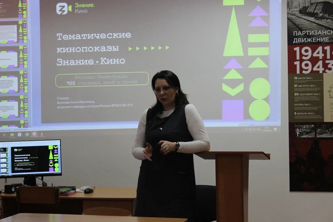 На базе исторического факультета прошла Всероссийская просветительская акция «Знание.Кино» - тематический кинопоказ, посвященный 80-летию освобождения Ленинграда от фашистской блокады. Мероприятие провела Анна Ивановна Волкова , ассистент кафедры истории России.