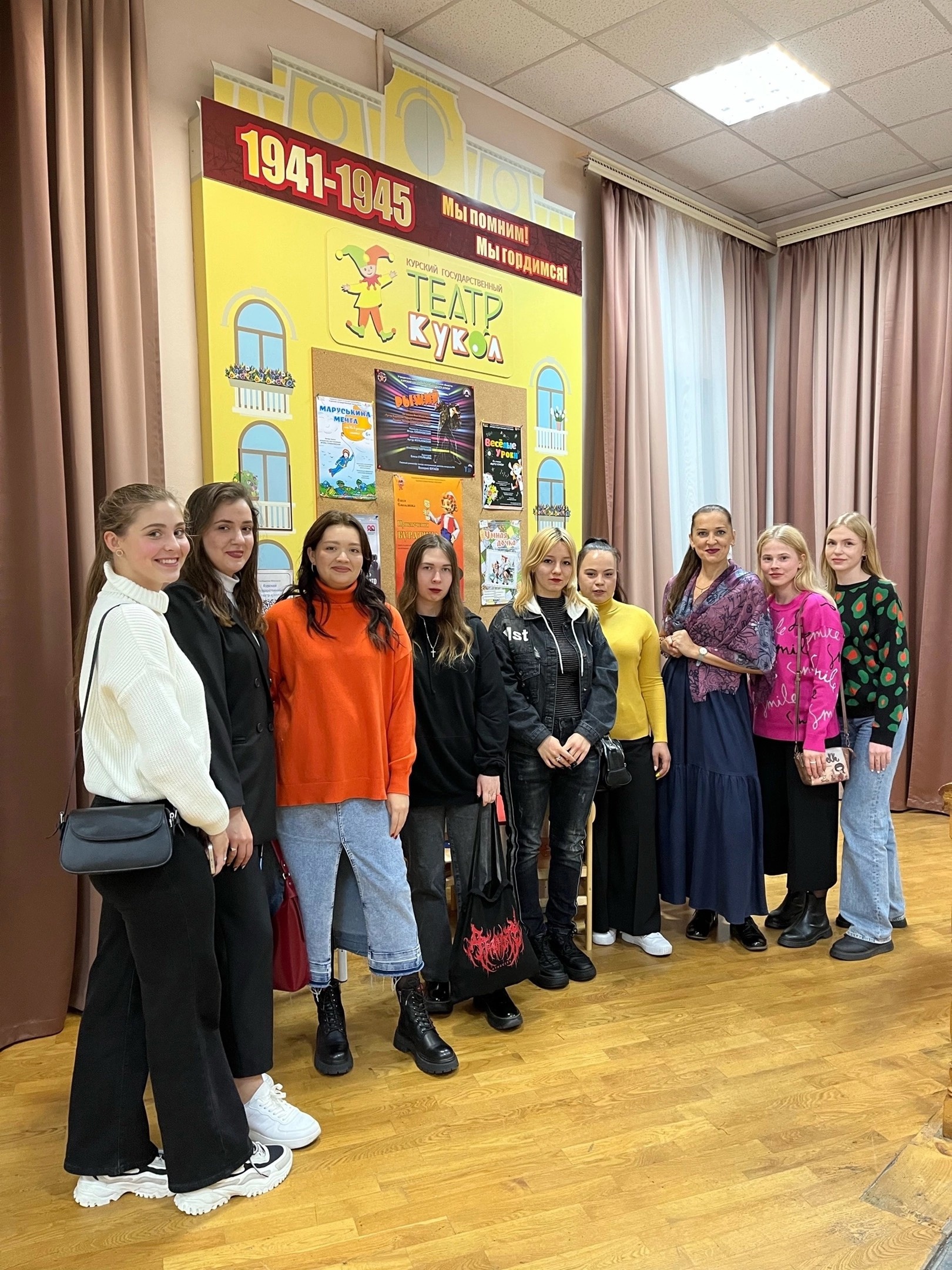7 октября студенты 1 курса юридического факультета вместе с заведующей кафедрой теории и истории государства и права Токаревой Сетланой Николаевной посетили музыкально-поэтический реквием «Когда-нибудь мы вспомним это…» в Курском государственном театре кукол . Спектакль большой формы на тему военных песен был посвящен 80-летию победы в Курской битве.
