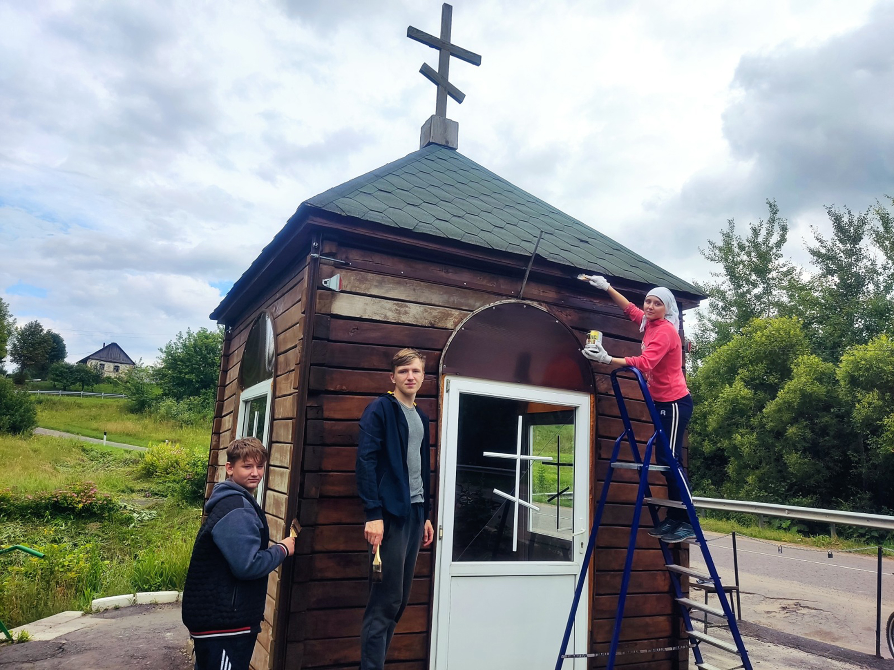 Собравшись вместе, юные селяне очистили деревянные стены, покрыли их специальной пропиткой и лаком, покрасили крест на маковке. Кроме того, убрали территорию от сорняков и пропололи цветники. После двух дней кропотливого труда в этом уголке малой родины стало ещё торжественнее и наряднее.