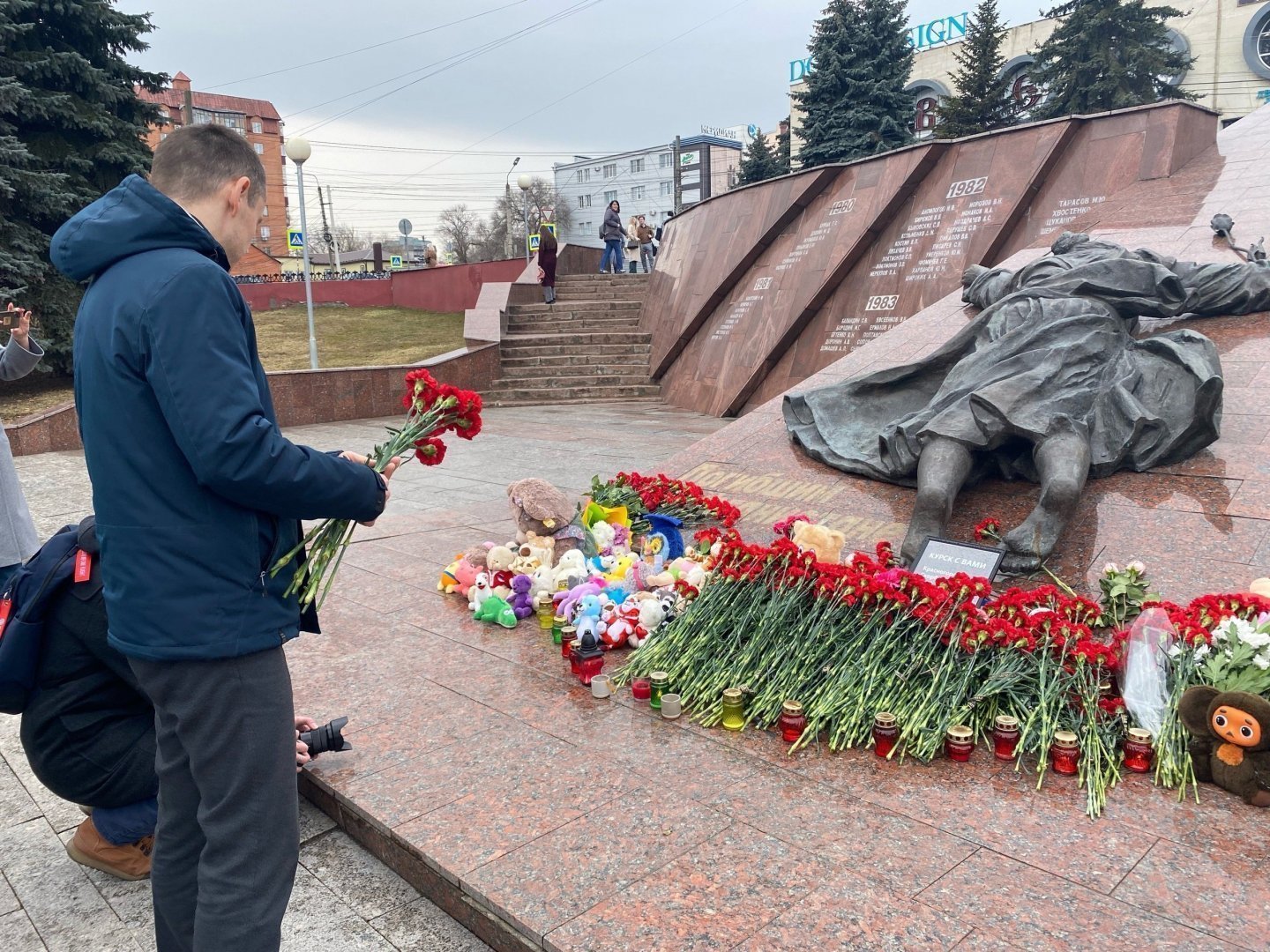 В знак скорби по погибшим в жутком теракте в Красногорске, студенты и сотрудники вуза совместно с проректором по молодежной политике ЮЗГУ Иваном Емельяновым возложили цветы к монументу Скорбящей матери в Курске.