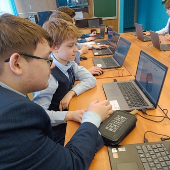 Одновременно с обучающимися, которые находились в учебных кабинетах, оборудованных компьютерами и специальным программным обеспечением, работали педагоги Центров образования «Точка роста».