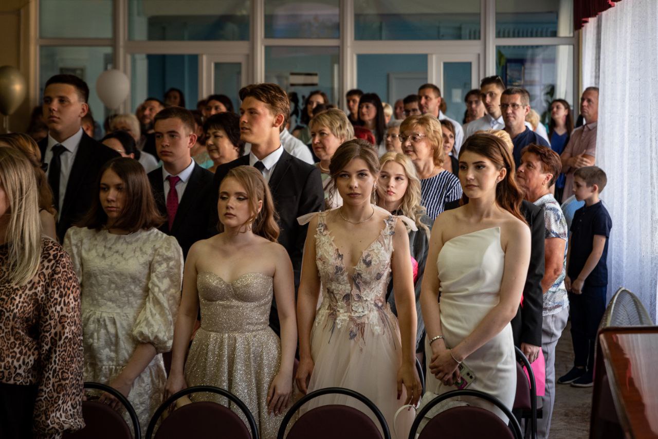 В актовом зале вручили восемь золотых медалей и четыре серебряные за успехи в учёбе.