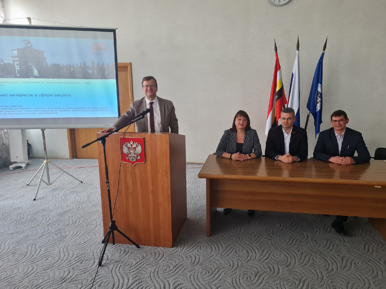 В Курской академии государственной и муниципальной службы прошел семинар-совещание с органами государственной власти и органами местного самоуправления Курской области, посвященный исполнению антикоррупционного законодательства. Участие в мероприятии приняла начальник отдела организационной деятельности и кадровой политики Министерства образования и науки региона Элина Зайцева.