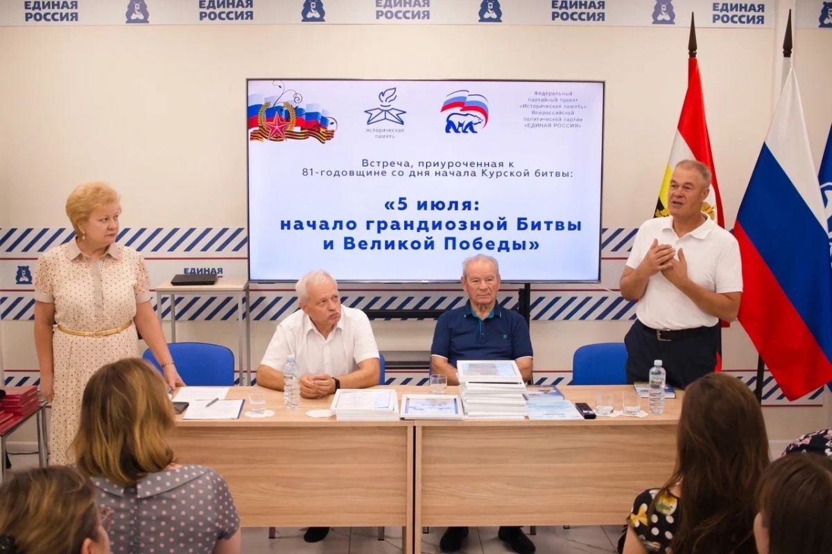 Встреча была посвящена к 81-й годовщине со дня начала Курской битвы. В ней также приняли участие генерал-майор в отставке Алексей Даньшин, руководитель поискового отряда «Курган» Алексей Сотников, организатор музея Курской битвы ветеран воинской службы Юрий Оловянников и председатель общественного совета партпроекта «Историческая память», профессор ЮЗГУ Владимир Коровин .