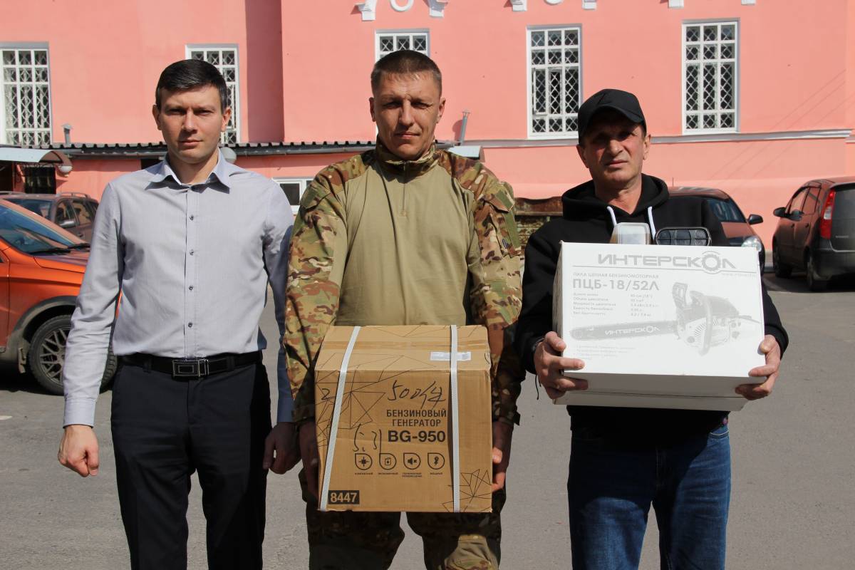 Военнослужащим вручили бензиновый генератор и бензопилу, а для жителей ДНР, пострадавших от обстрелов через Аварийно-спасательную службу региона передали продукты питания.