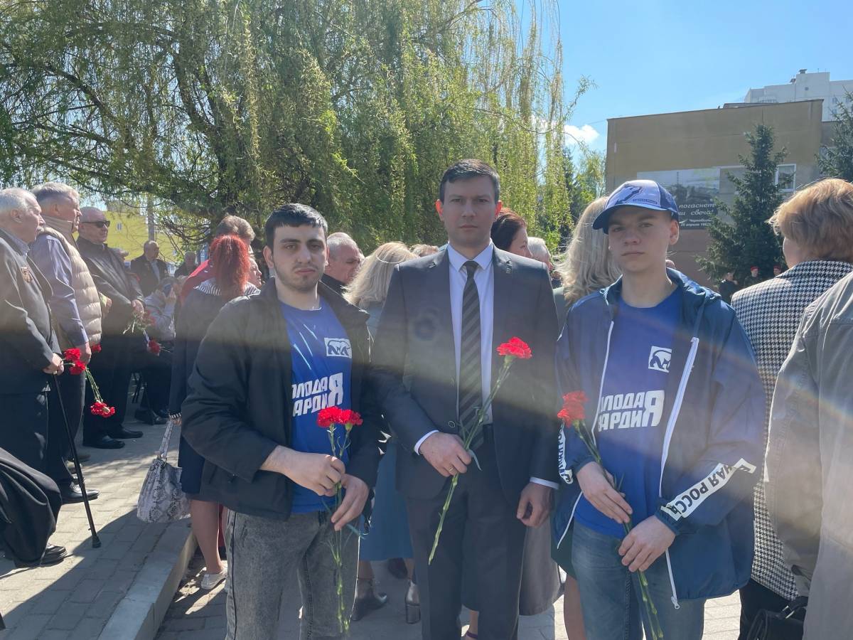 Активисты курского регионального отделения «Молодой Гвардии Единой России», и.о. руководителя регионального исполкома «Единой России» Сергей Муравьёв, общественники, представители органов власти, вместе с курянами возложили цветы к памятнику «Героям Чернобыля» возле курской средней школы № 59 им. Г.М. Мыльникова.