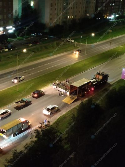 Ночью в Курске иномарка перевернулась от столкновения