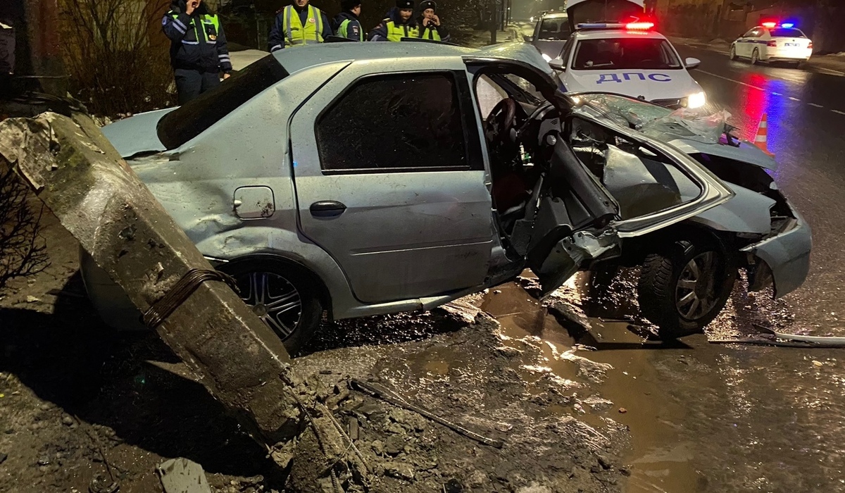Утром первого января на Кривецком переулке в Курске произошло ДТП. Водитель «Reno-Logan» не справился с управлением и столкнулся с опорой ЛЭП.