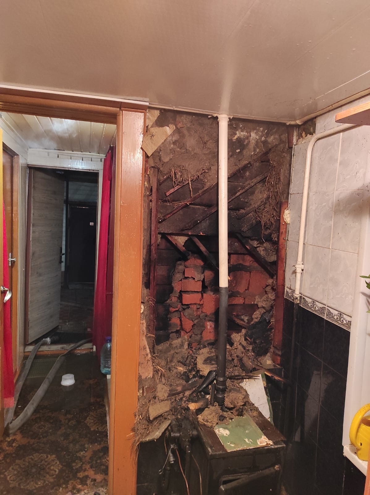 Огонь возник в коридоре жилого дома размером 6*8 метров. Загорелась стена около дымохода.