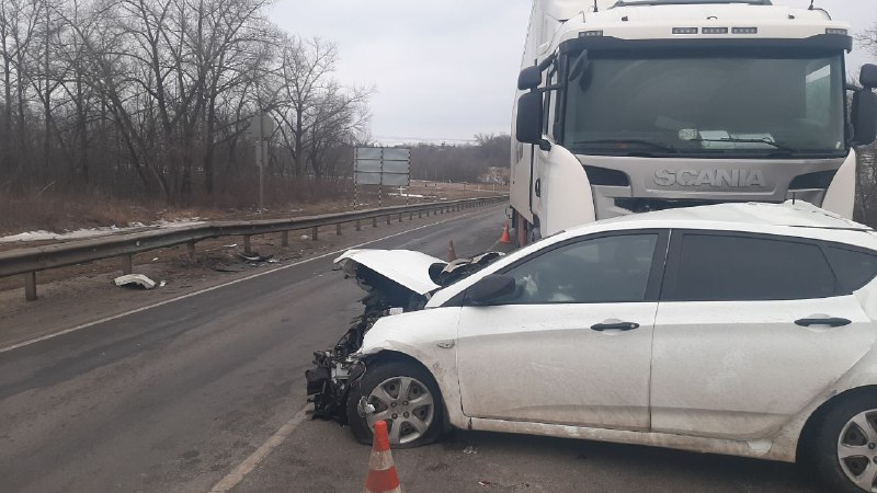 На 554-ом километре трассы М2 «Крым» столкнулись автомобиль «Хендай», за рулем которого находилась 27-летняя девушка, и встречная фура «Скания».