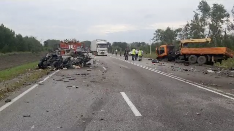 В результате аварии водитель легковушки, а также 52-летний пассажир от полученных травм скончались на месте. 23-летний водитель самосвала с травмами доставлен в больницу.