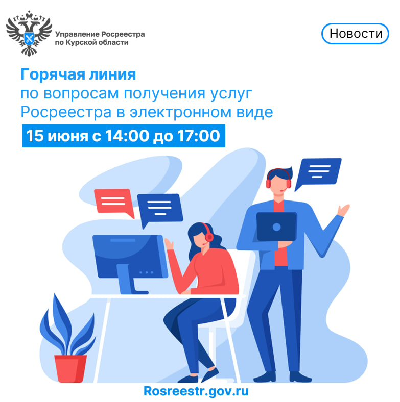 15 июня 2023 года с 14.00 до 17.00 Управление Росреестра по Курской области в рамках проведения всероссийской телефонной горячей линии Росреестра ответит на вопросы, связанные с получением государственных услуг в электронном виде.