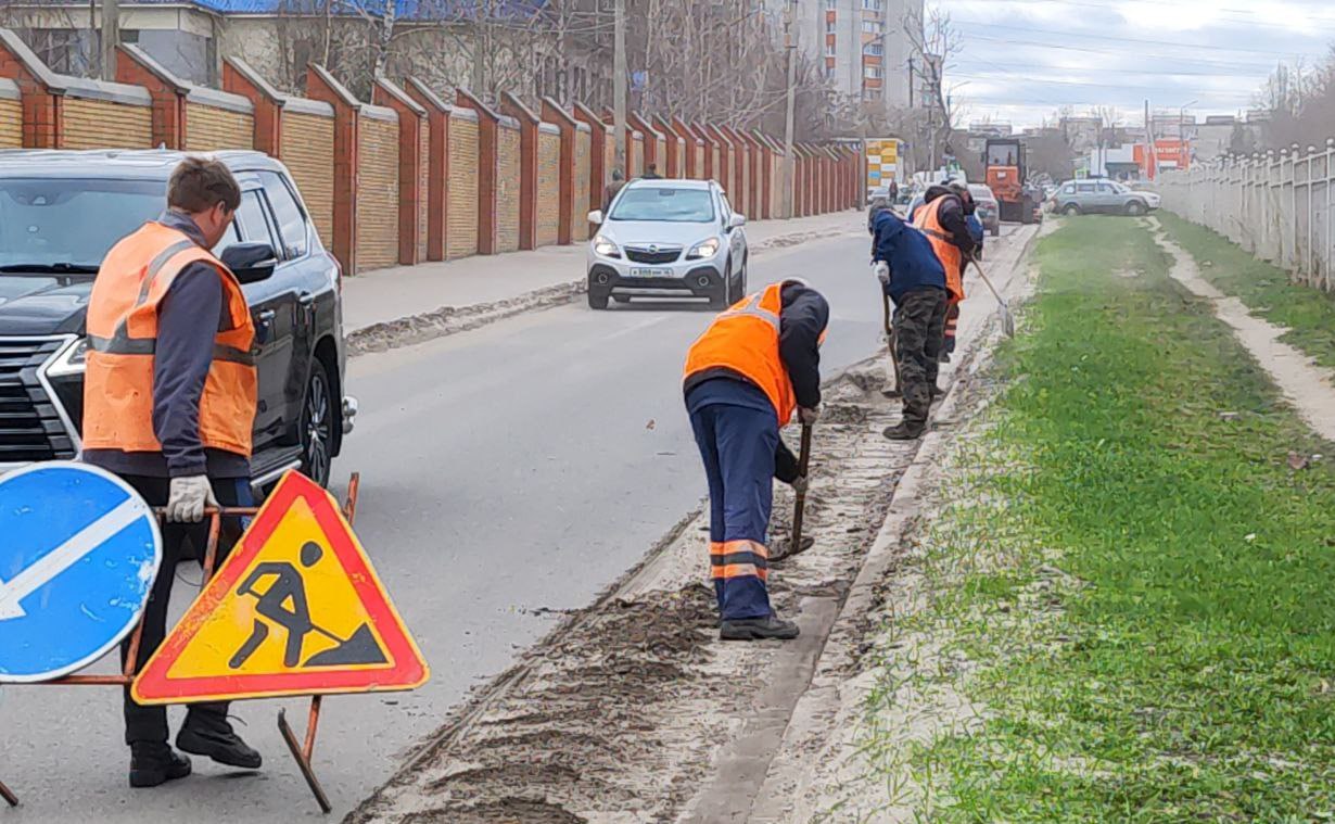 Продолжается уборка автомобильных и пешеходных дорог. Рабочие очищают проезжую часть от пыли, грязи и песка, убирают мусор на тротуарах.