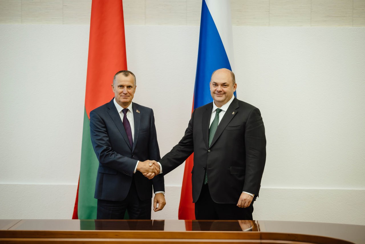 В город Могилёв отправилась делегация региона с рабочим визитом. Там Алексей Смирнов и председатель Могилёвского облисполкома Анатолий Исаченко провели совещание.