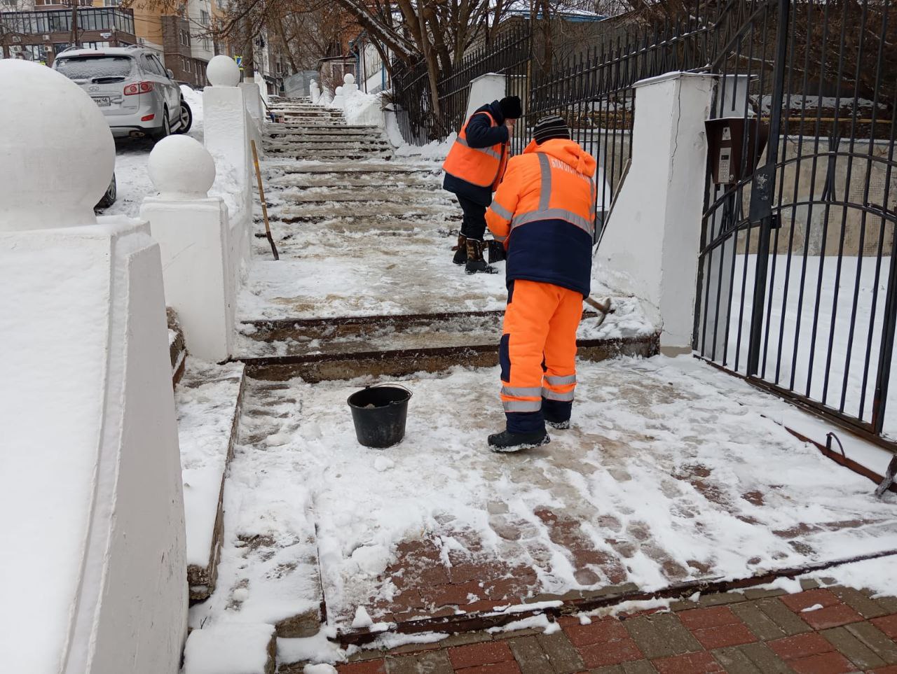Комитет дорожного хозяйства продолжает очищать лестничные спуски в областном центре.