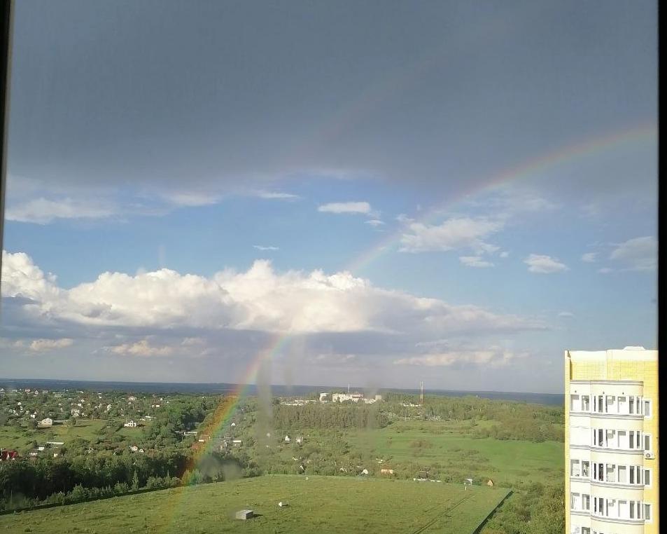 Ранее в Курске прошел дождь. Подписчики сообщают, что над проспектом Дериглазова была замечена двойная радуга.