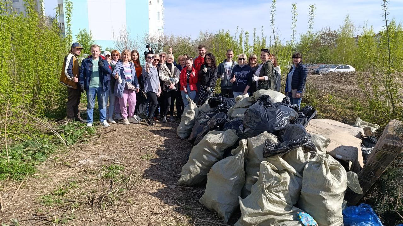 Команда из комитета по труду и занятости населения убрались на проспекте Клыкова за домом 26.