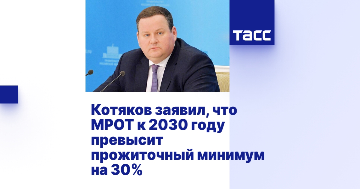 МОСКВА, 29 мая. /ТАСС/. Минимальный размер оплаты труда (МРОТ) к 2030 году превысит прожиточный минимум на 30%, сообщил в понедельник министр труда и социальной защиты РФ Антон Котяков на встрече с фракцией ЛДПР.