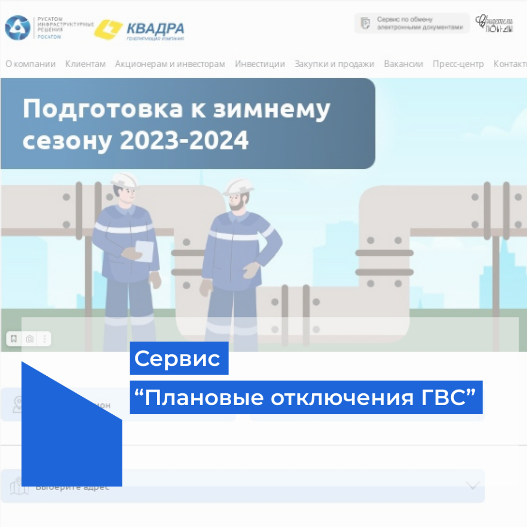 Напоминаем, что на сайте АО «Квадра» работает сервис «Плановые отключения ГВС», с помощью которого вы можете получить оперативные сведения по отключению горячей воды в вашем доме.