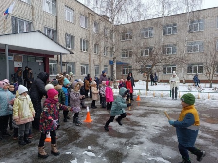 Развлечение началось традиционно с разминки, дети с большим жеванием выполняли упражнения под музыку. После разминки их ожидали спортивные эстафеты «Передача эстафетной палочки», «Метелки», Хоккеисты», «Перевези мячи», «Поиск клада».