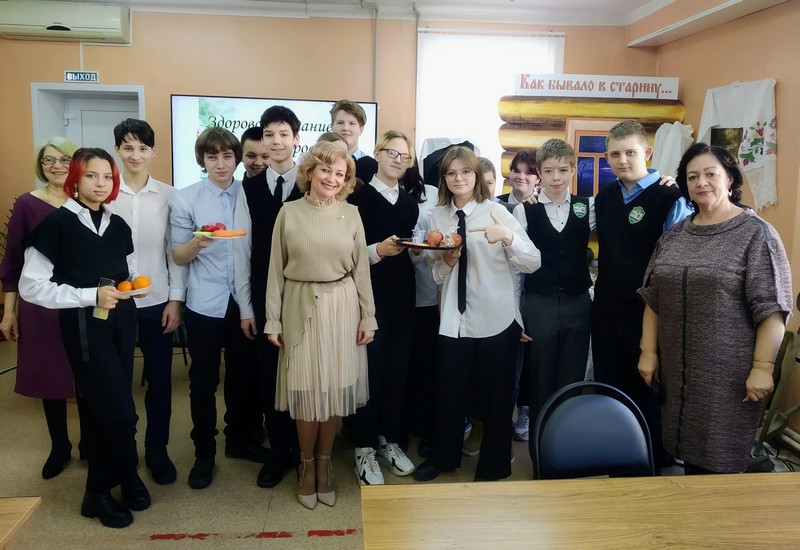 10 февраля в рамках работы клуба «Школа полезных советов» в читальном зале центральной городской библиотеки для обучающихся 8 Г класса школы №6 прошёл час здоровья. Библиотекари Т.Землянская, С.Ильченко и И.Скрипникова, изучив и взяв на вооружение пословицы и поговорки о здоровом питании, рассказали ребятам о пользе правильного питания.
