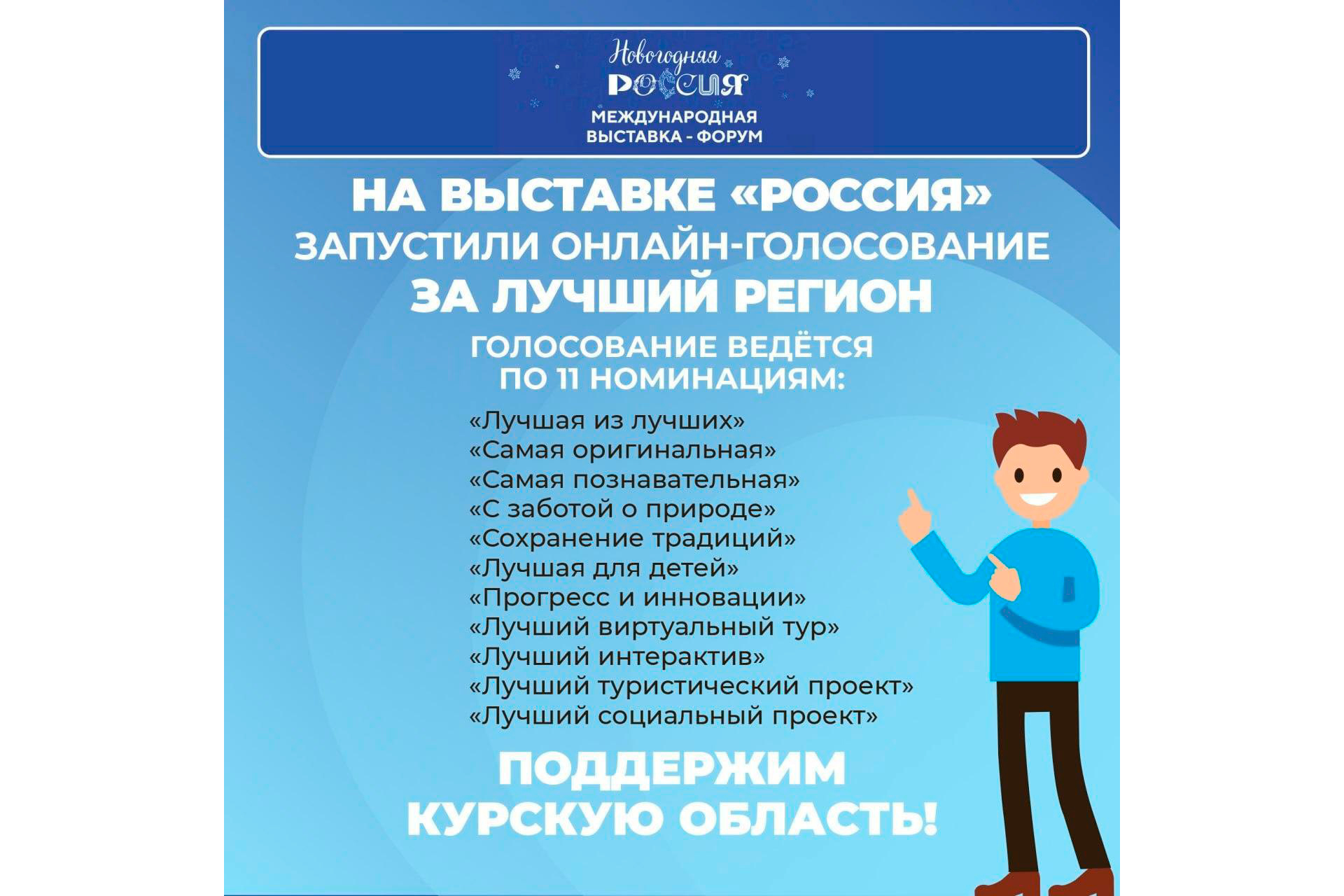 Напоминаем, что жители Курска и гости стенда региона могут проголосовать за экспозиции Курской области на сайте выставки «Россия» https://russia.ru/ .