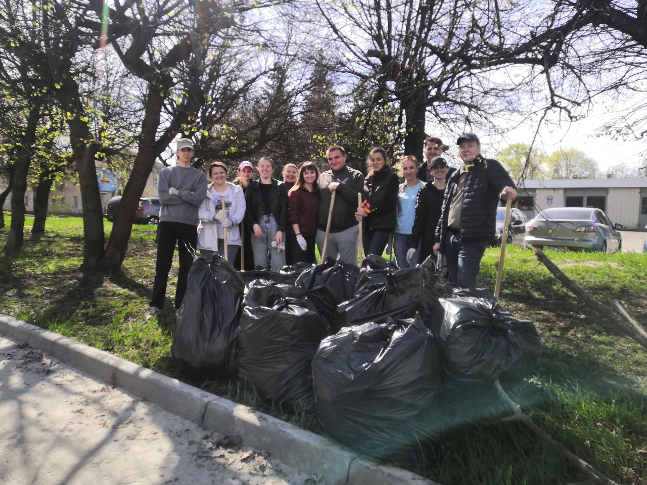 Сотрудники дворца молодёжи пришли на помощь команде министерства внутренней и молодёжной политики. Вместе они очистили территорию на проспекте Ленинского комсомола.