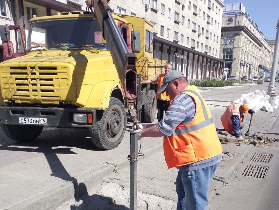 По согласованию с Госавтоинспекцией Курской области специалисты подрядной организации также демонтируют пешеходное ограждение вдоль дороги центральной улицы – она покрылась ржавчиной, что не соответствует стандартам.