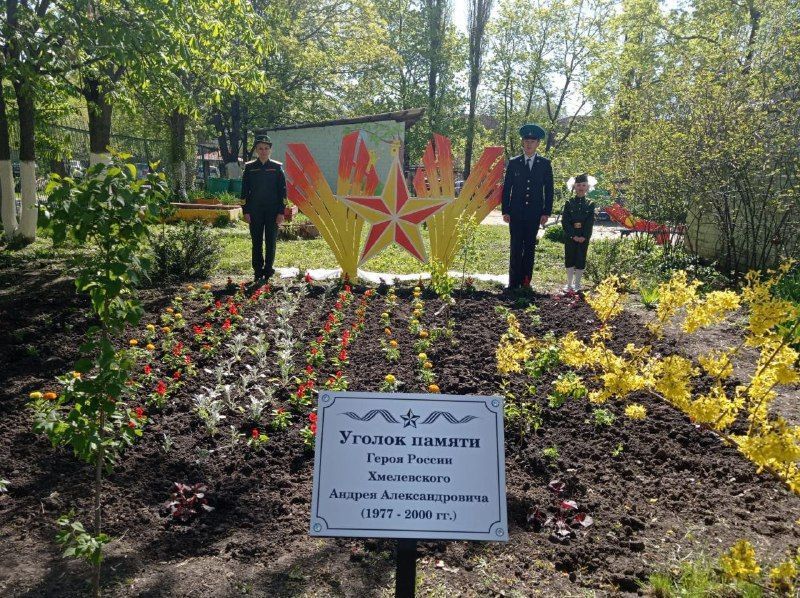 9 мая прошлого года здесь был открыт памятный знак в честь погибшего при исполнении служебного долга сержанта милиции Андрея Хмелевского.Указом президента Российской Федерации за мужество и героизм ему посмертно присвоено звание Героя Российской Федерации.