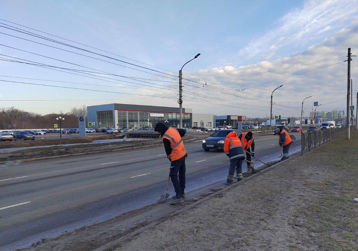 В городе продолжается очитка улиц от грязи, песка, мусора, пыли – как с помощью уборочных машин, так и вручную.