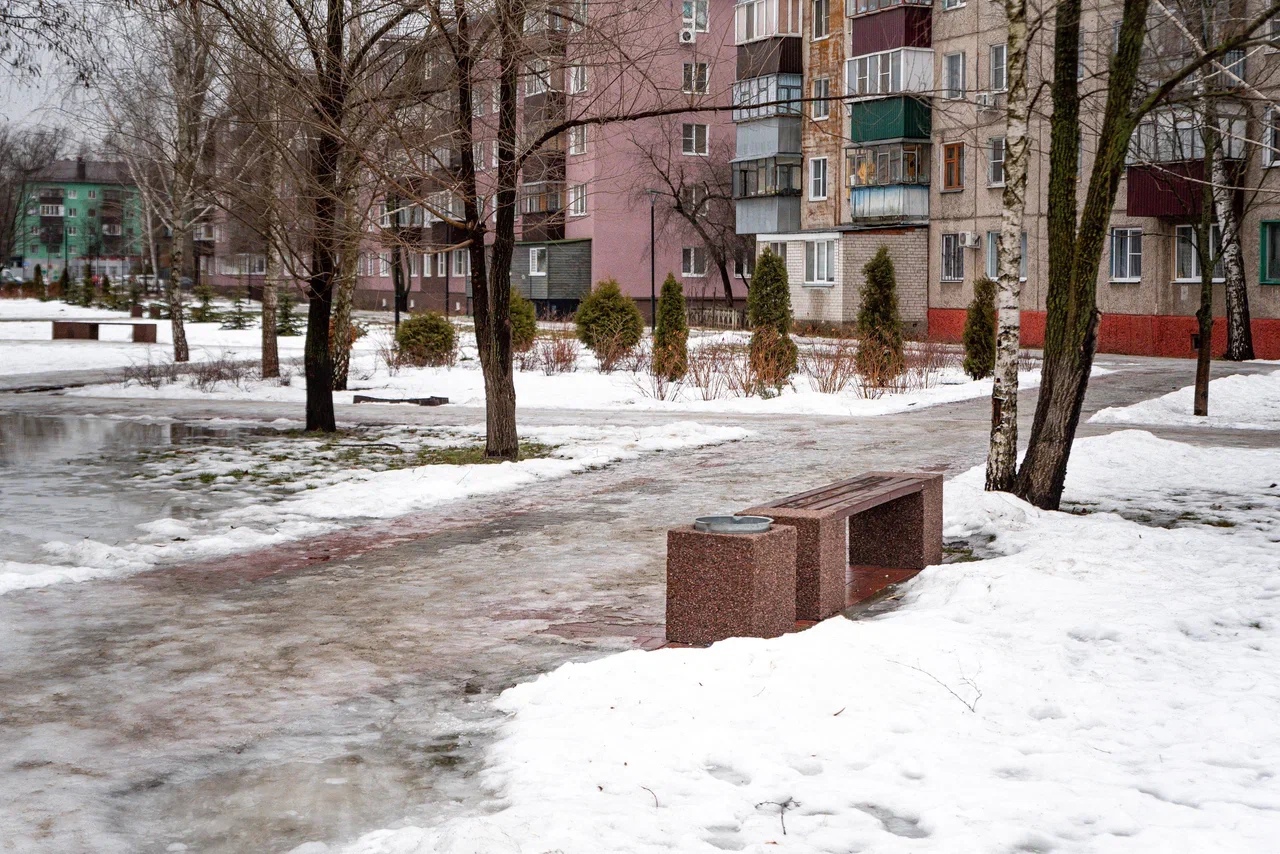Здесь была осуществлена работа по укладке тротуарной плитки, высажены многолетние растения, установлены детская площадка, лавочки, освещение.