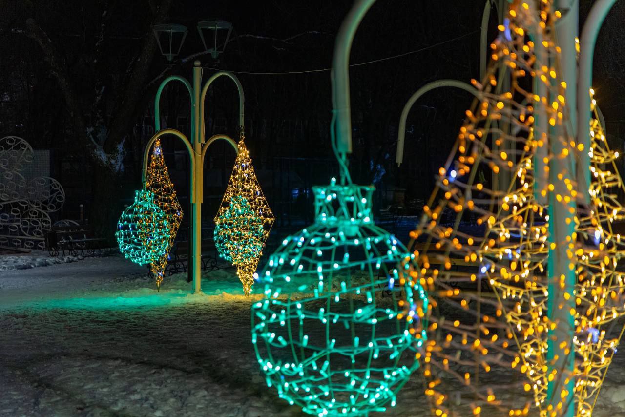 Парк Пионеров украшает арка-сердце, а парк имени Дзержинского — светодиодный фонтан и инсталляция «Новогодние шары». Аналогичная инсталляция из шаров расположена в парке Героев Гражданской войны. В парке КЗТЗ размещён пряничный Домик Деда Мороза, а также светодиодная арка.