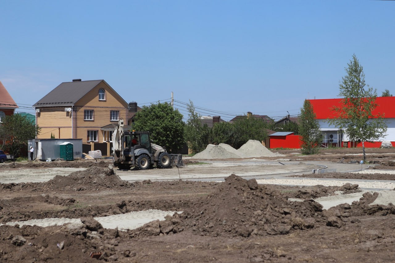 Сейчас подрядная организация уже провела расчистку будущего общественного пространства, спланировала территорию и завезла строительные материалы. Рабочие установили бортовые камни и отсыпали основания из щебня.