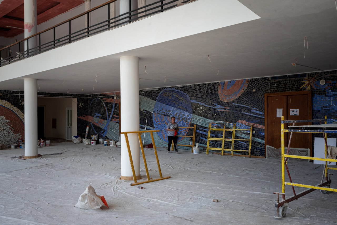 В комитете культуры рассказали, что в культурном центре «Лира» ремонтируют потолки и витражные откосы в фойе второго этажа. Уже смонтированы светодиодные светильники, на третьем этаже установят противопожарные двери.
