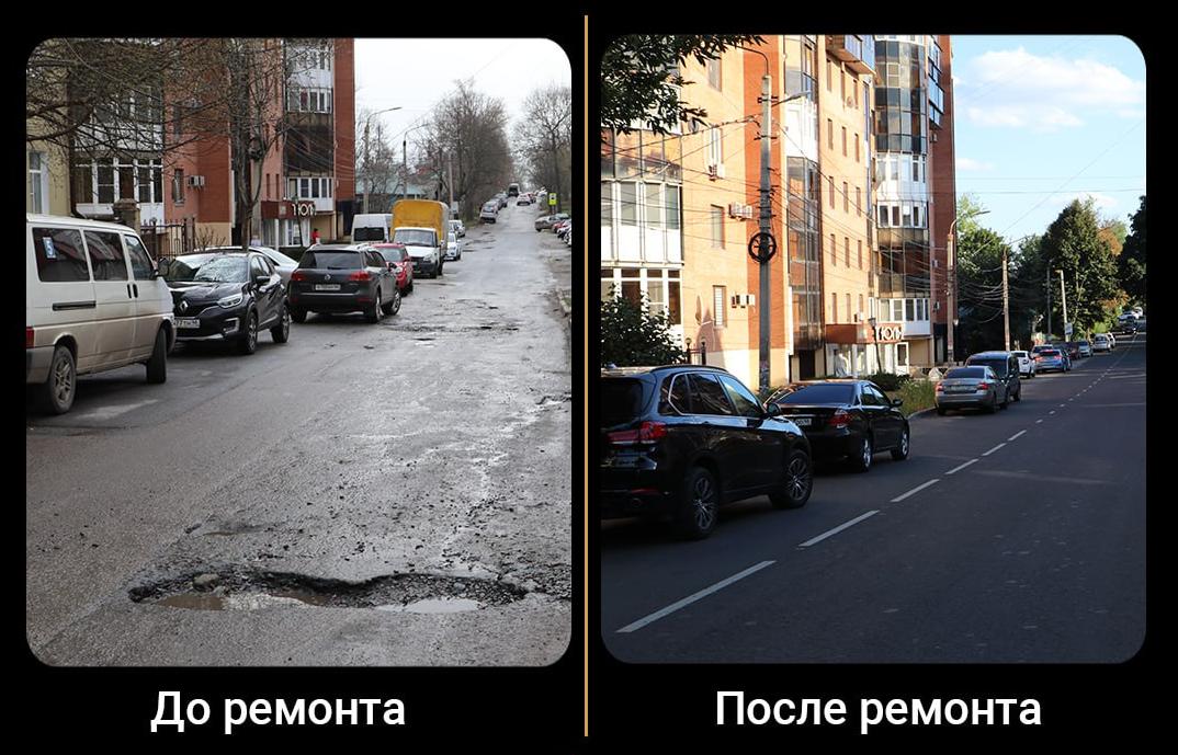Ранее на улице были обнаружены повреждения. В ходе работ заменили бортовой камень и люки, произвели восстановление тротуара. Общая протяженность дороги более 800 м.