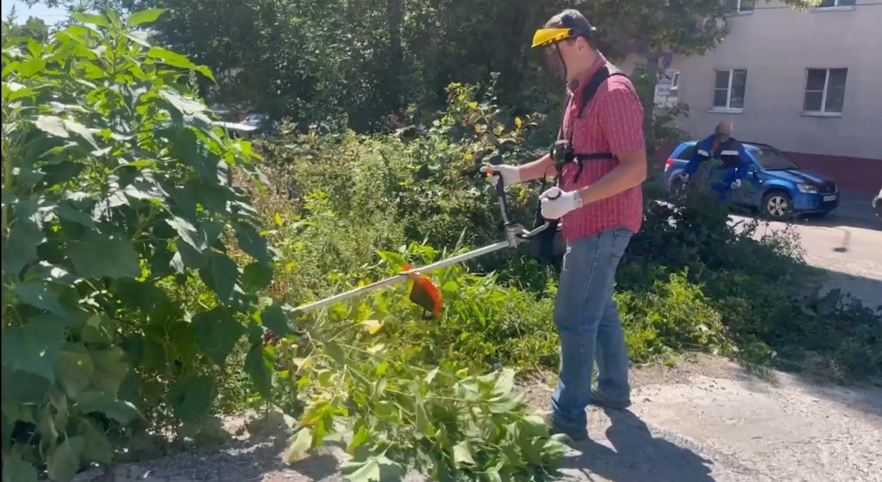 Работы по покосу сорной растительности и уборке мусора на территории организованы сотрудниками администрации Центрального округа.