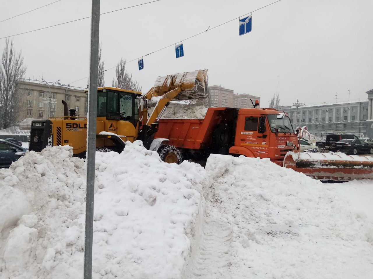 В Курске очищают улицы от снега 58 рабочих и 56 единиц спецмашин
