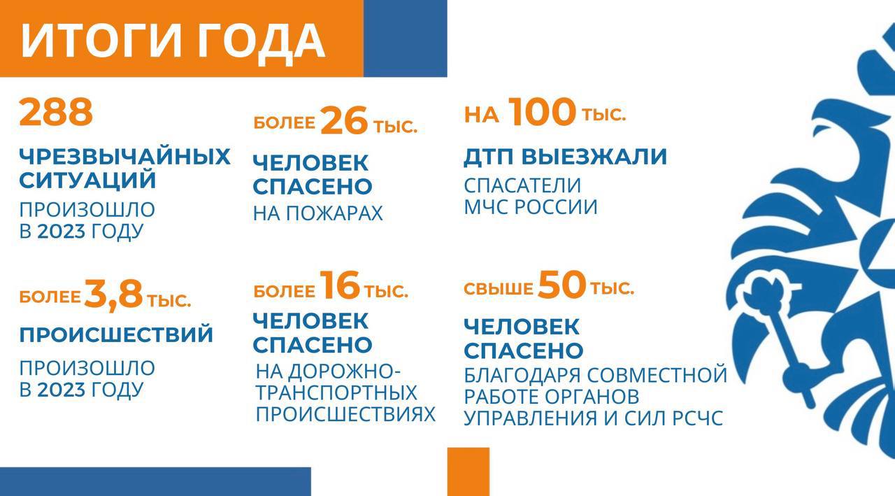 Итоги подвел Глава МЧС России Александр Куренков. В этом году сотрудниками МЧС в области было спасено более 25 тысяч человек в пожарах и более 16 тысяч из ДТП.