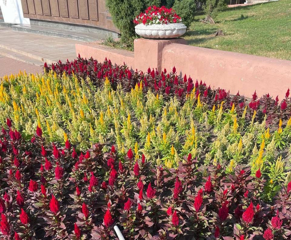 В аномально жаркую погоду подрядная организация тщательно поливает растения в общественных пространствах города.